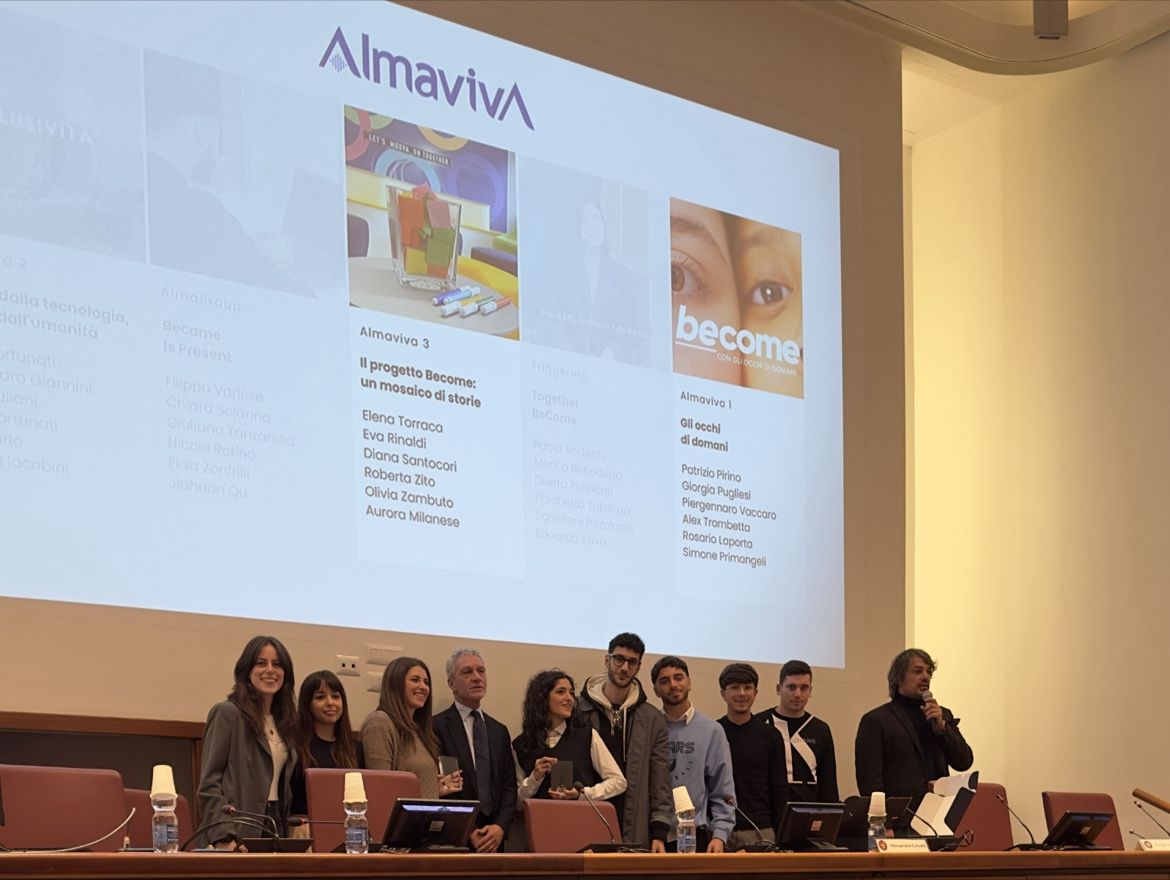 Alla premiazione sono intervenute le aziende che hanno partecipato al progetto – Almaviva, Edison-Fondazione Eos, Ferrovie dello Stato Italiane, Umana, UniCredit – e gli esperti del settore della comunicazione e dell’audiovisivo come D-Hub Studios, Spencer & Lewis, Onstream Studio, Bendo, che hanno accompagnato il percorso ideativo e realizzativo degli studenti. Un’occasione importante per i ragazzi che, in questo modo, hanno avuto l’opportunità di approfondire tutte le fasi di lavorazione un corto ideato per le piattaforme social, dalla progettazione alla realizzazione, fino alla promozione.