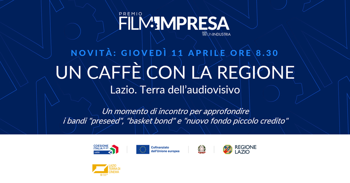 Nell'ambito delle iniziative per le imprese nell'ambito di Film Impresa, siamo lieti di segnalare una novità in palinsesto: un momento di incontro dedicato alle aziende per approfondire i bandi "preseed", "basket bond" e "nuovo fondo piccolo credito", esplorare le opportunità di finanziamento e ricevere risposte dettagliate.
