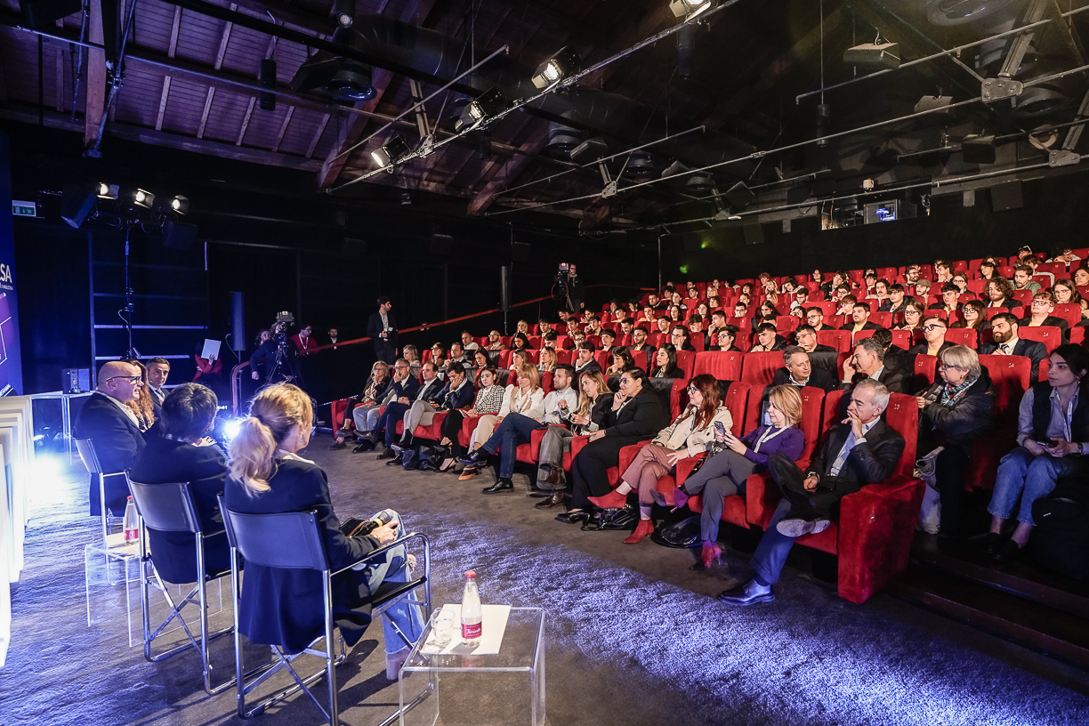 Giovani protagonisti del Premio Film Impresa nell'apertura della seconda giornata: la nuova serialità sbarca nella comunicazione d’impresa e il Presidente del Gruppo Giovani Imprenditori di Unindustria, Corrado Savoriti, ha sottolineato il legame del cinema intervenendo alla giornata che ha coinvolto numerosi giovani, tra cui gli studenti dell'ITS Meccatronico del Lazio: