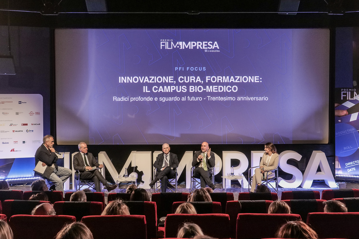 La seconda giornata del Premio Film Impresa è poi continuata con un confronto sulla fondamentale importanza della parità di genere sia all’interno delle imprese che in ambito sportivo, ma non di meno nel cinema. L’immagine che viene raccontata del mondo aiuta a superarne i limiti per valorizzare i talenti di oggi e costruire un domani comune. A cura di Umana, per l'area narrativa, i temi della scrittura, dell'immaginario, e della messa in scena per i film d’impresa che non hanno paura di trarre ispirazione dal cinema. Di innovazione nel campo dell’immagine e nel suono hanno trattato i filmati in concorso per il premio al miglior Film Innovation, Image & Sound a cura di Almaviva. In conclusione, sulle note del Maestro Morricone, Film Impresa si è immersa nel mondo dell’innovazione, della cura e della formazione, alla scoperta delle storie di chi vive quotidianamente la realtà dalle mille sfaccettature del Campus Biomedico. Dagli operatori socio-sanitari agli studenti di ingegneria biomedica, dalla medicina specialistica alla ricerca scientifica, dall’accoglienza degli anziani alle notti in pronto soccorso: il sogno e l’impresa di trent’anni di energia, intelligenza e passione di centinaia di persone, per costruire una realtà fondata su valori profondi e uno sguardo sempre aperto al futuro.