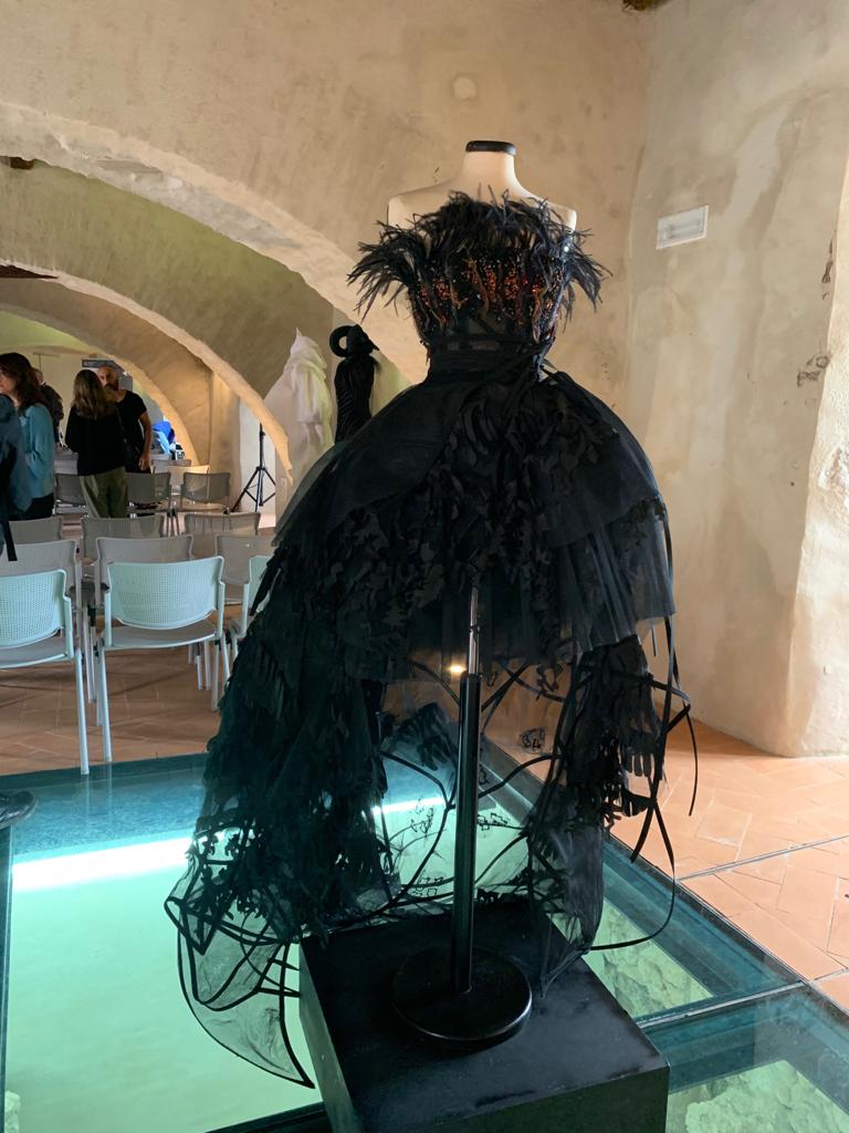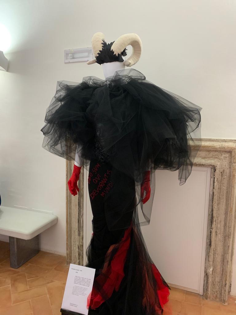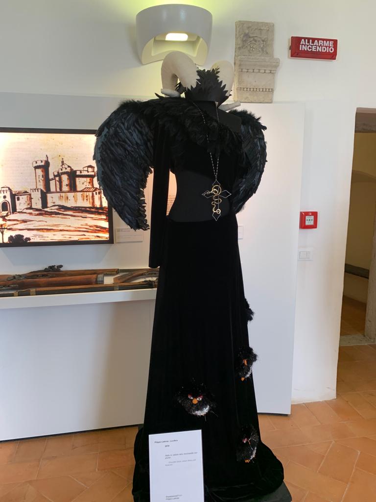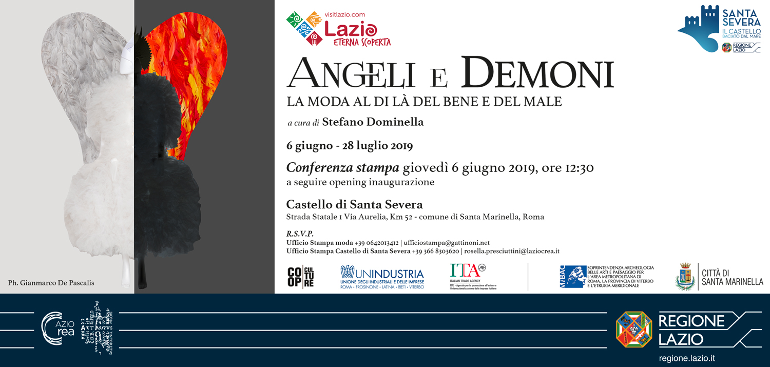 La Mostra ‘Angeli e Demoni’, a cura di Stefano Dominella, narra come la moda sia democratica, offra diverse soluzioni stilistiche e si presenti con varie tipologie pensate per personaggi eccentrici dalle attitudini artistiche e culturali. Il connubio tra il tema della Mostra e il castello si palesa con la forza dell’evidenza, creando la scenografia ideale: si presenta come tempio, soprattutto quella di giovani designer che hanno dato originali forme ai loro Angeli e ai loro Demoni.
