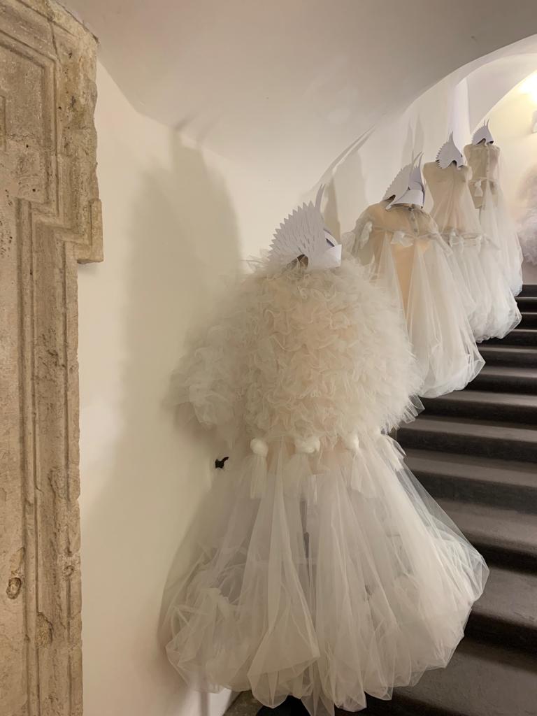 In esposizione, tra stilisti di chiara fama e giovani designer, si cita: Irene Galitzine, Moschino (archivio privato Fidanza), Jean Paul Gaultier (archivio privato Fidanza), Gattinoni, Gianni de Benedittis, Guillermo Mariotto, Filippo Sorcinelli, Alessandro Consiglio,Italo Marseglia, Ivan Donev, Santo Costanzo, Silvia Giovanardi, Tommaso Fux, Filippo Laterza, Andrea Lambiase, Christian Luongo, Natalia Rinaldi, Francesca Nori, Gianluca Saitto, Guido Di Sante, Simona Milone, Eleonora Volpe. Inoltre, anche creazioni sospese tra arte e moda come quelle della costume-designer Anna Rotella in collaborazione con gli artisti Marco Caracuzzo e Fabio Truffa. Un omaggio al grande teatro e al cinema con costumi spettacolari provenienti dagli archivi storici di Annamode Costumes, eccellenza del made in Italy, della Sartoria Farani e della sartoria Nori per le divise esposte. La scenografia della Mostra, visitabile fino al 28 luglio 2019, sarà arricchita dalle sculture-opera realizzate dall’artista Federico Paris.