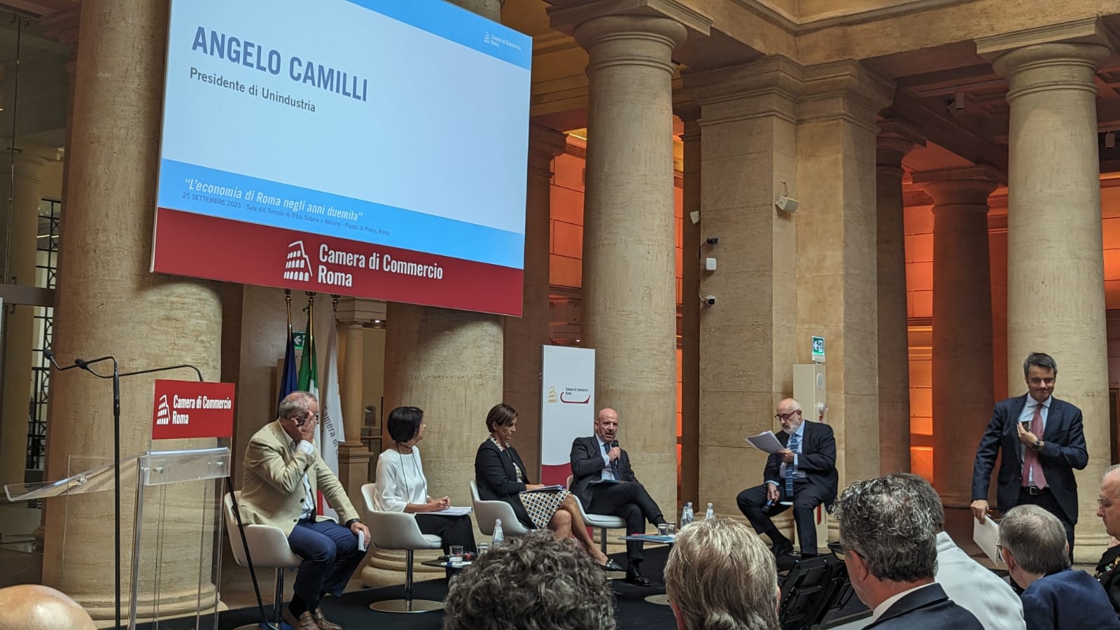 In foto nella tavola rotonda, insieme al Presidente Camilli, gli assessori Monica Lucarelli (Roma Capitale) e Roberta Angelilli (Regione Lazio), e Luigi Capello (LVenture Group).