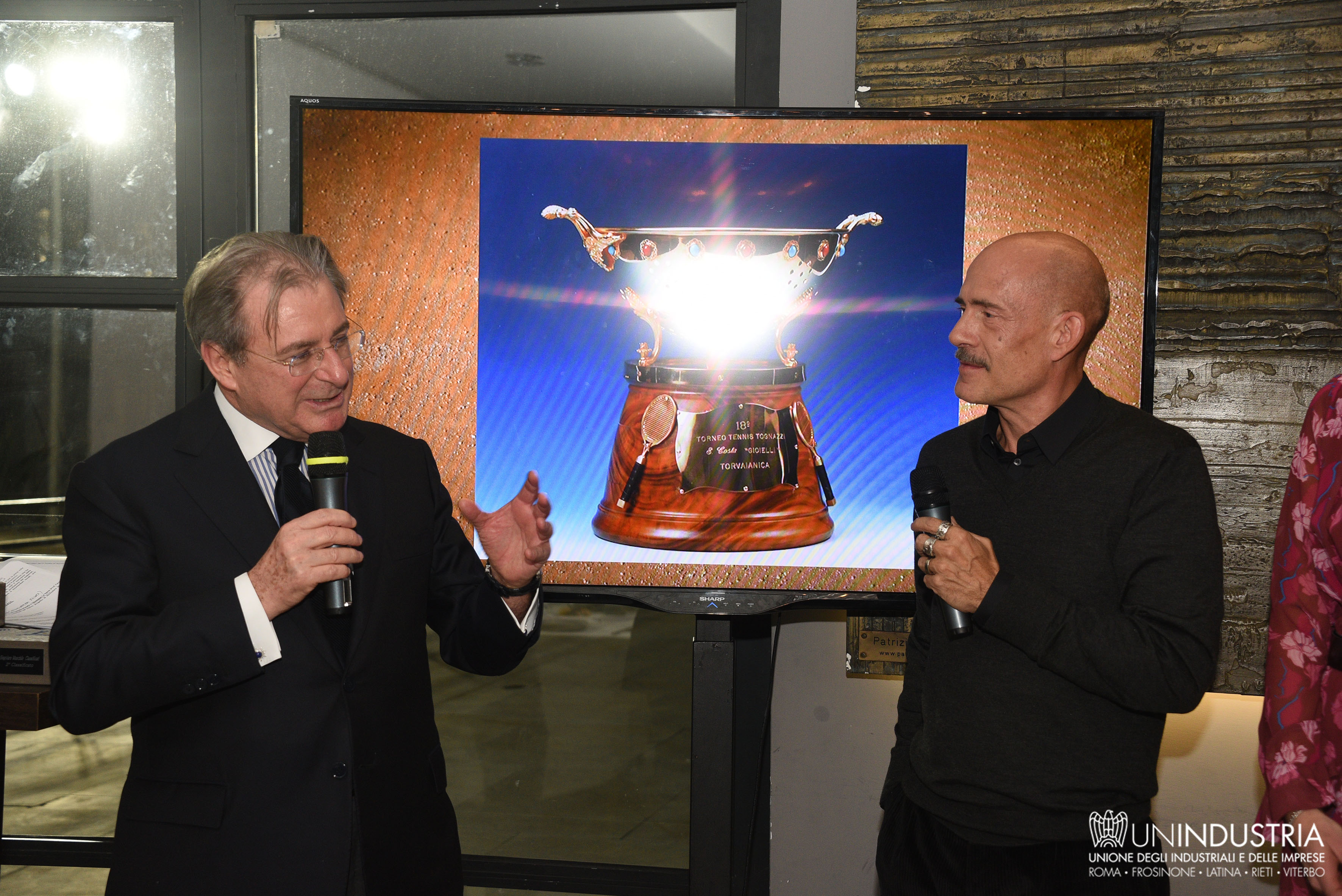 Sfilata di campioni nella serata speciale di Unindustria in occasione della X edizione del Torneo di tennis dedicato al mondo imprenditoriale. Occasione di sport e di cultura, come ha spiegato il presidente Filippo Tortoriello, intervenuto all’evento che ha premiato i migliori tennisti impegnati negli storici campi rossi del Foro Italico. Ma anche una serata d’amarcord con la leggenda del tennis italiano Adriano Panatta che è tornato nel tempio del tennis dopo venti anni di lontananza, per partecipare al decennale di Unindustria. Panatta è considerato il più grande giocatore italiano dell'era Open e uno dei più grandi di sempre, che conquistò, tra l’altro, gli Internazionali di tennis nel 1976 proprio al Foro Italico.