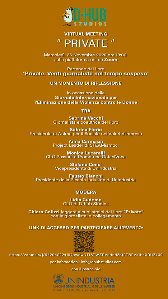 Giornata Internazionale contro la violenza sulle donne - Webinar “Private" promosso dall'azienda associata D-Hub Studios e con il patrocinio di Unindustria