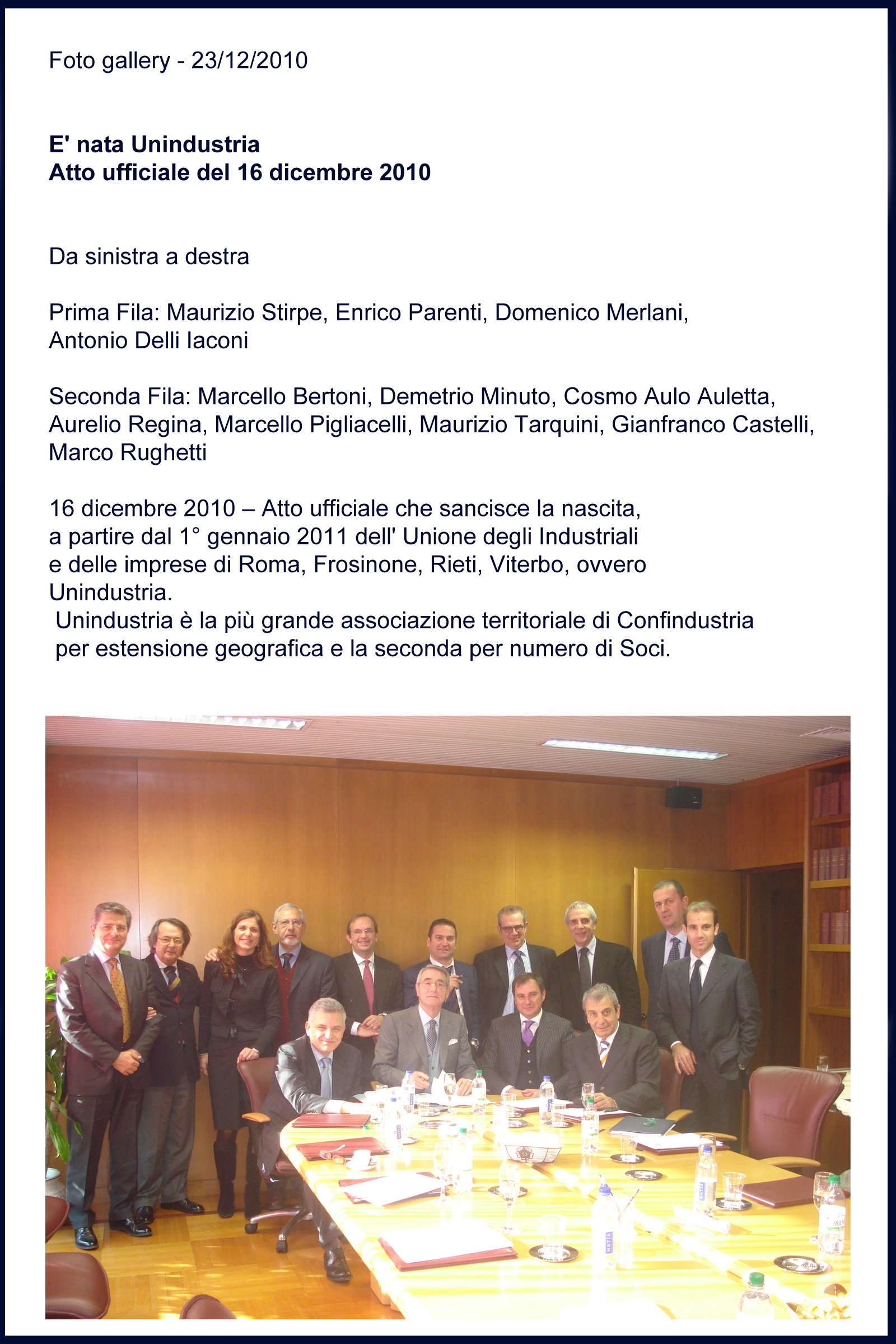 Dieci anni fa la costituzione di UNINDUSTRIA