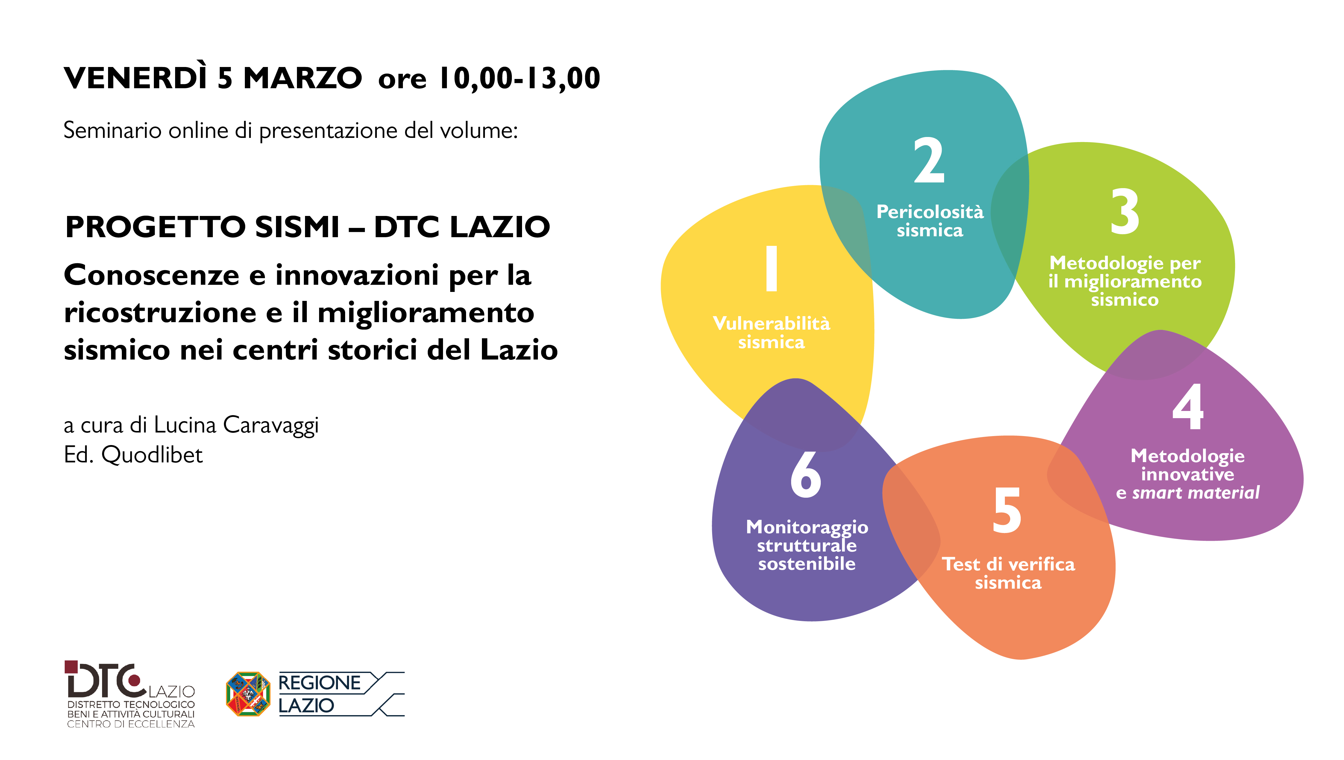 Venerdì 5 marzo dalle ore 10 alle ore 13 si svolgerà online il seminario di presentazione del volume Progetto Sismi-DTC Lazio. Conoscenze e innovazioni per la ricostruzione e il miglioramento sismico dei centri storici del Lazio.