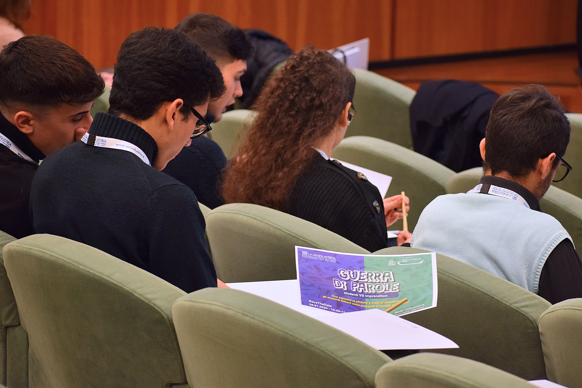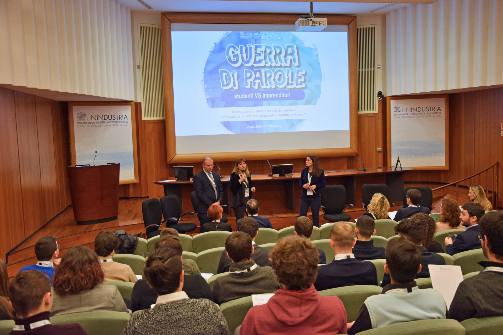 Lo scorso 28 gennaio, Unindustria ha ospitato nella sua sede il format “Guerra di Parole".Studenti Vs Imprenditori si sfidano a “colpi di dialettica” sul seguente tema: Gli studenti italiani sono preparati al mondo del lavoro?
