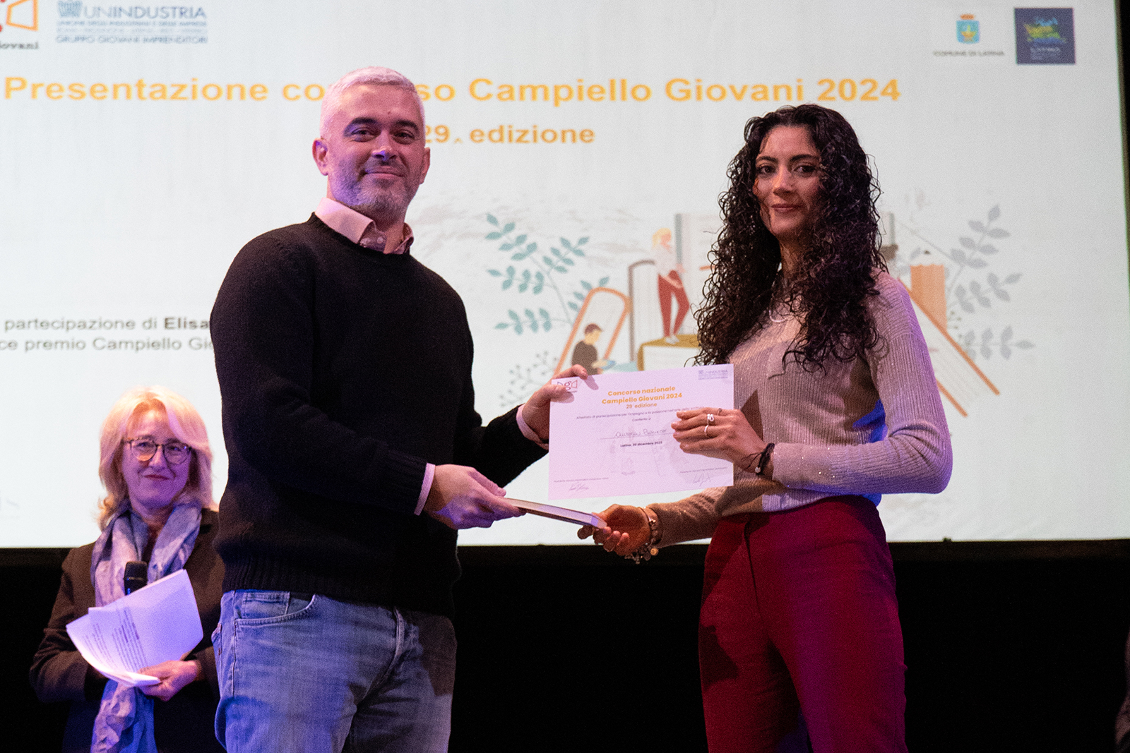 Oggi al Teatro D’Annunzio di Latina, su iniziativa del Gruppo Giovani Imprenditori di Unindustria, si è tenuta la presentazione della 29^ edizione del Premio Campiello Giovani. Un appuntamento - che ha avuto il patrocinio del Comune di Latina nell’ambito delle manifestazioni per i 91 anni della città - con cui i nostri Giovani Imprenditori supportano la Fondazione Campiello nella promozione del noto concorso letterario.