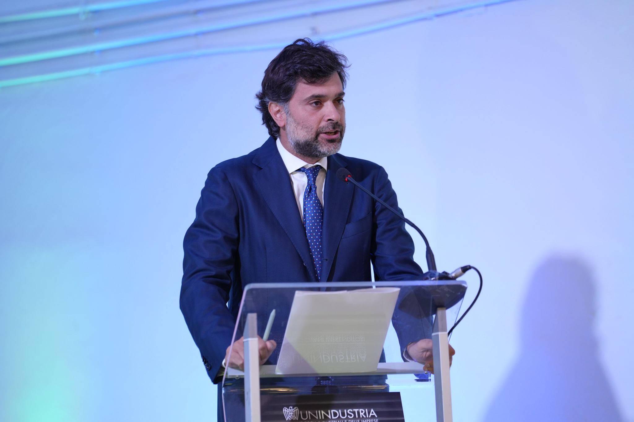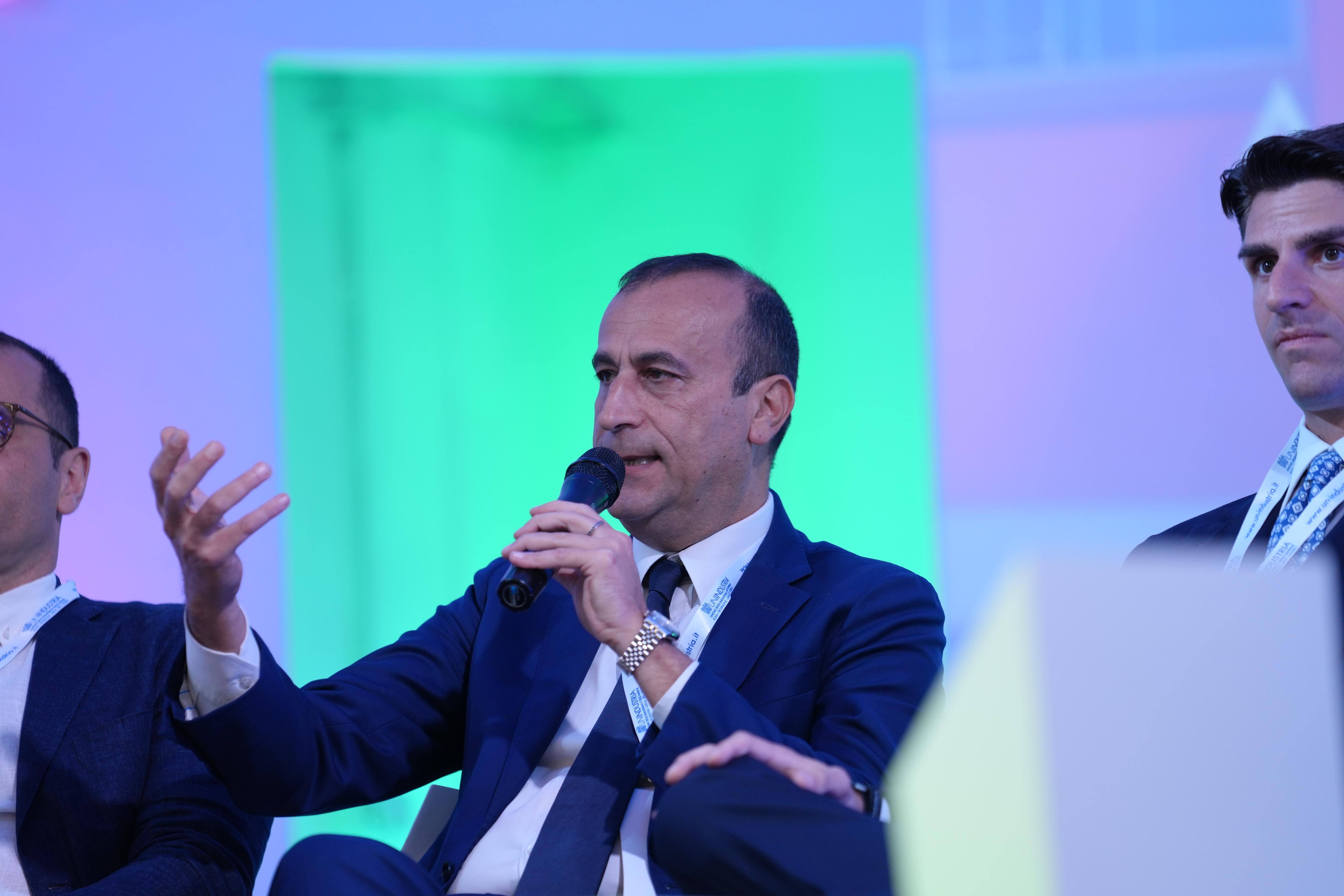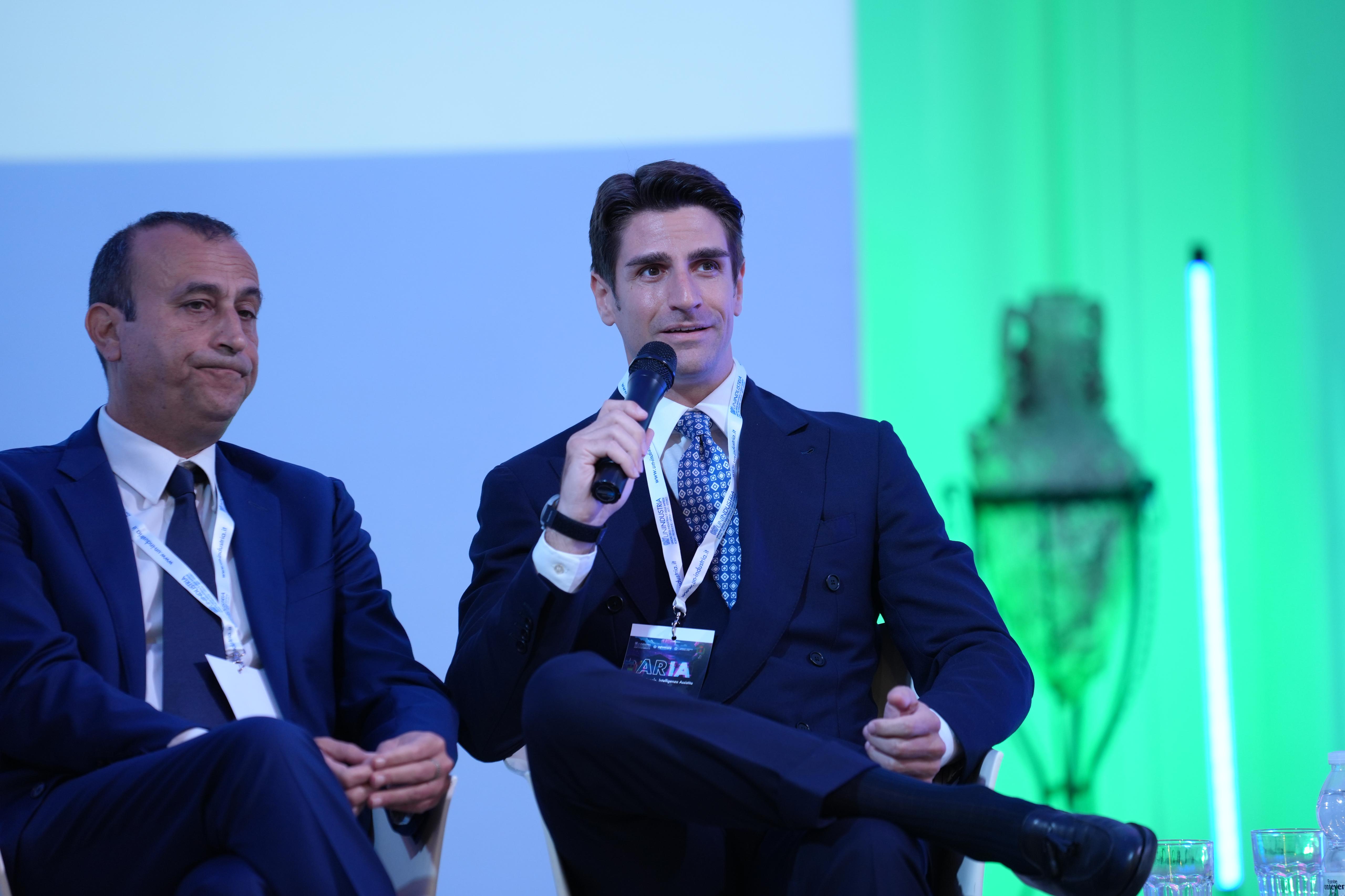 La testimonianza imprenditoriale del giovane imprenditore Luca Valeri, Amministratore Unico LV Group, che a proposito di Intelligenza Artificiale nelle Imprese ha presentato proprio un progetto innovativo sviluppato con l'AI: “Il mio desiderio era quello di investire nel territorio con un progetto innovativo e avanguardistico che potesse creare una sinergia tra il mondo dell’energia, che è il mio settore di riferimento, e quello dell’agricoltura, che spesso è visto in contrapposizione al valore creato dal settore fotovoltaico. L’investimento nasce dunque sul territorio e precisamente nella Val di Comino, dove abbiamo trovato le condizioni più adatte, e sono orgoglioso di poterlo presentare con Unindustria che è sempre attenta al territorio. Abbiamo quindi creato una struttura sopraelevata di pannelli solari, sopra un terreno, e tramite l’IA e dei sensori speciali per la gestione dei dati prevediamo di fornire energia a 250 famiglie e 10 imprese, avendo costituito una Comunità Energetica, e offrire occupazione a 50 persone grazie alle stime sul nostro impianto a produzione totale. Puntiamo, quindi, con un progetto a sei mesi, a produzione Green e Decarbonizzazione".