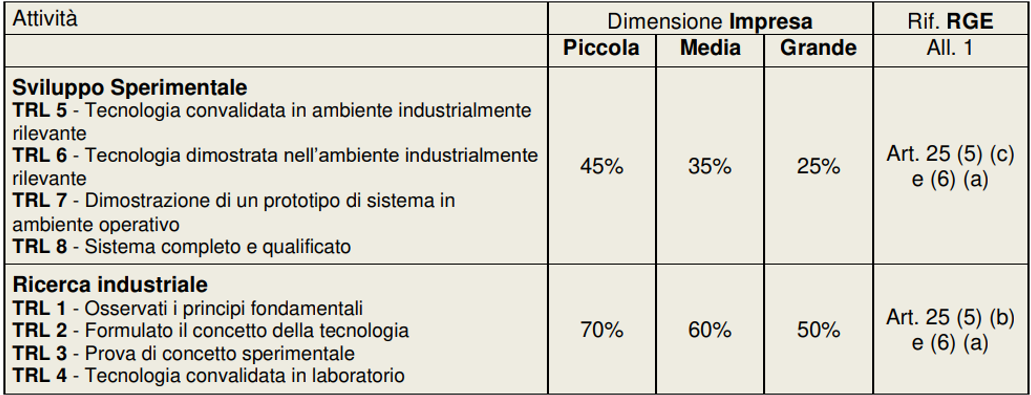 Tale contributo è concesso in regime De Minimis ove applicabile e l’intensità di aiuto è quella prevista per lo Sviluppo Sperimentale senza maggiorazione (35% o, se Piccole Imprese, 45%).