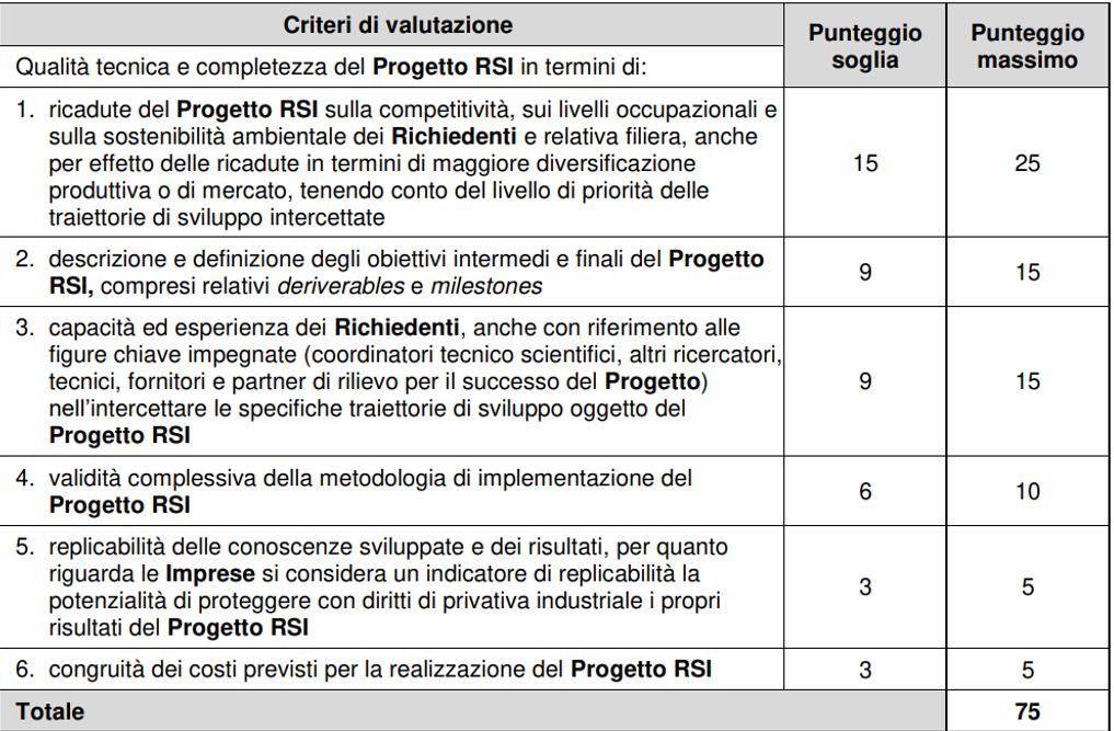Sono ritenuti “idonei” solo i Progetti che avranno ottenuto un punteggio almeno pari al minimo indicato in tabella per ciascun criterio di valutazione e un punteggio complessivo almeno pari a 50.