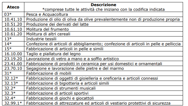 *Di seguito l’elenco dei codici ATECO ammessi all'Asse 4: