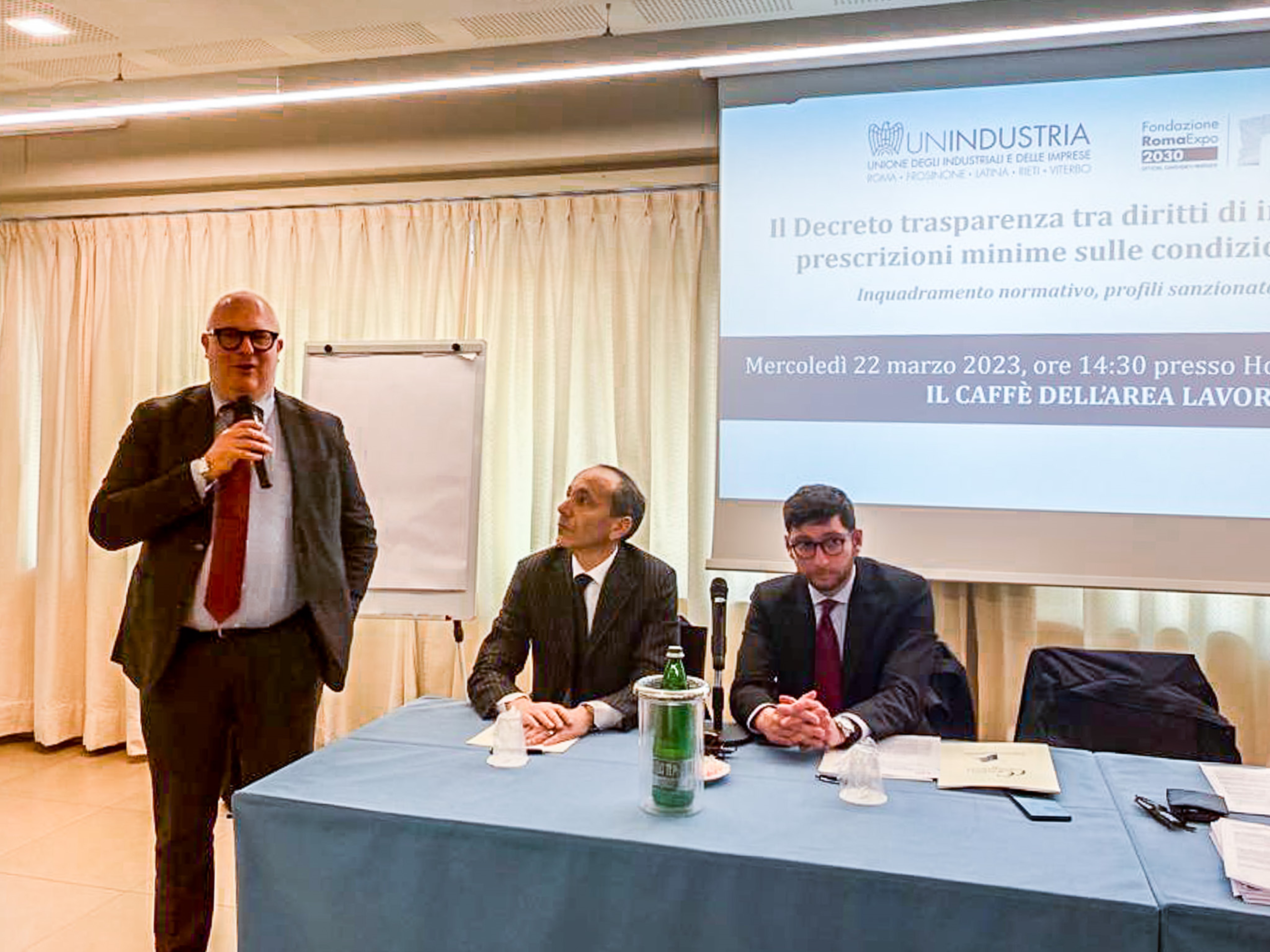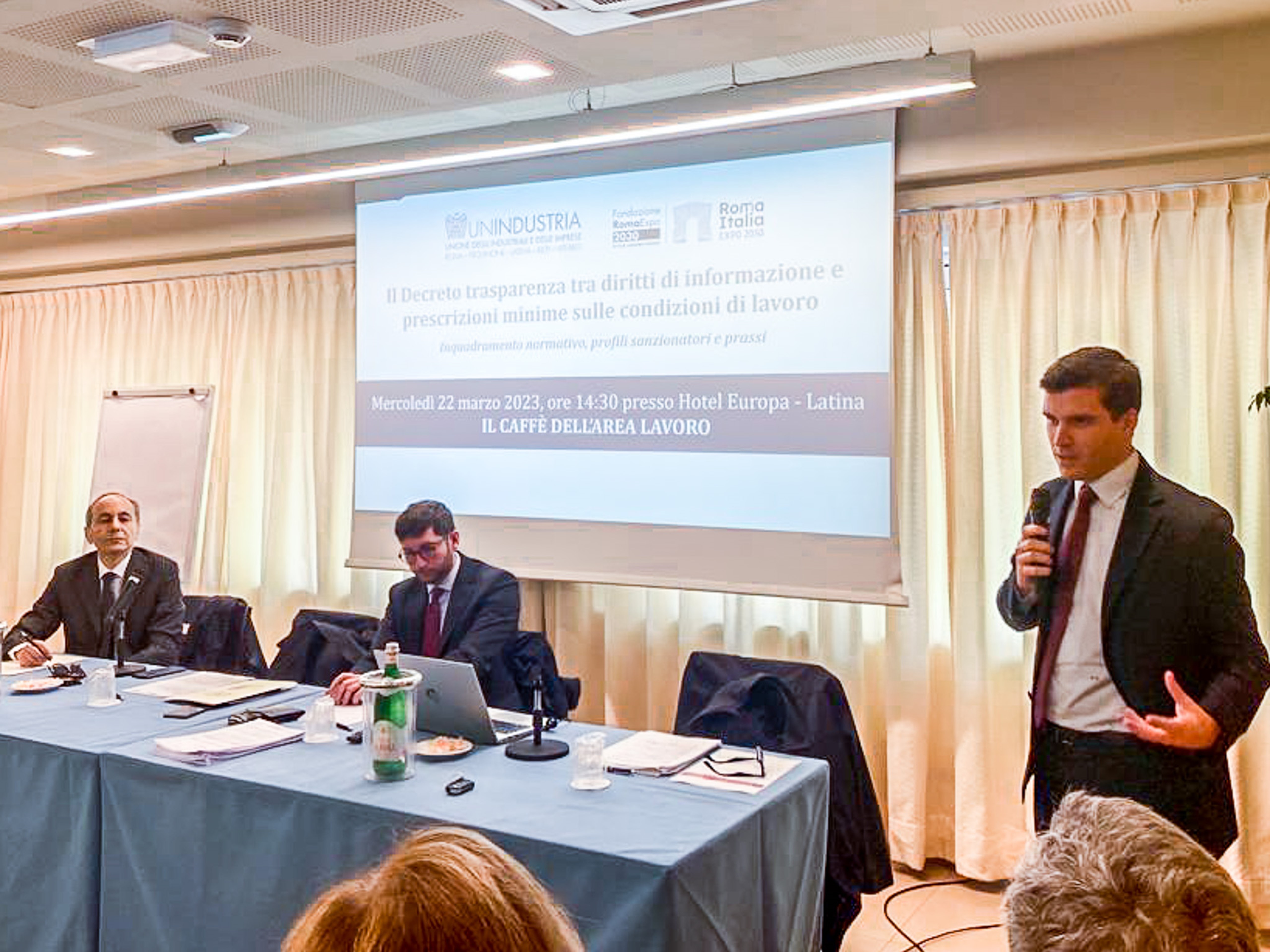 • presentazione di Unindustria, a cura di Lorenzo Patacchia, "Il Decreto trasparenza tra diritti di informazione e prescrizioni minime sulle condizioni di lavoro"