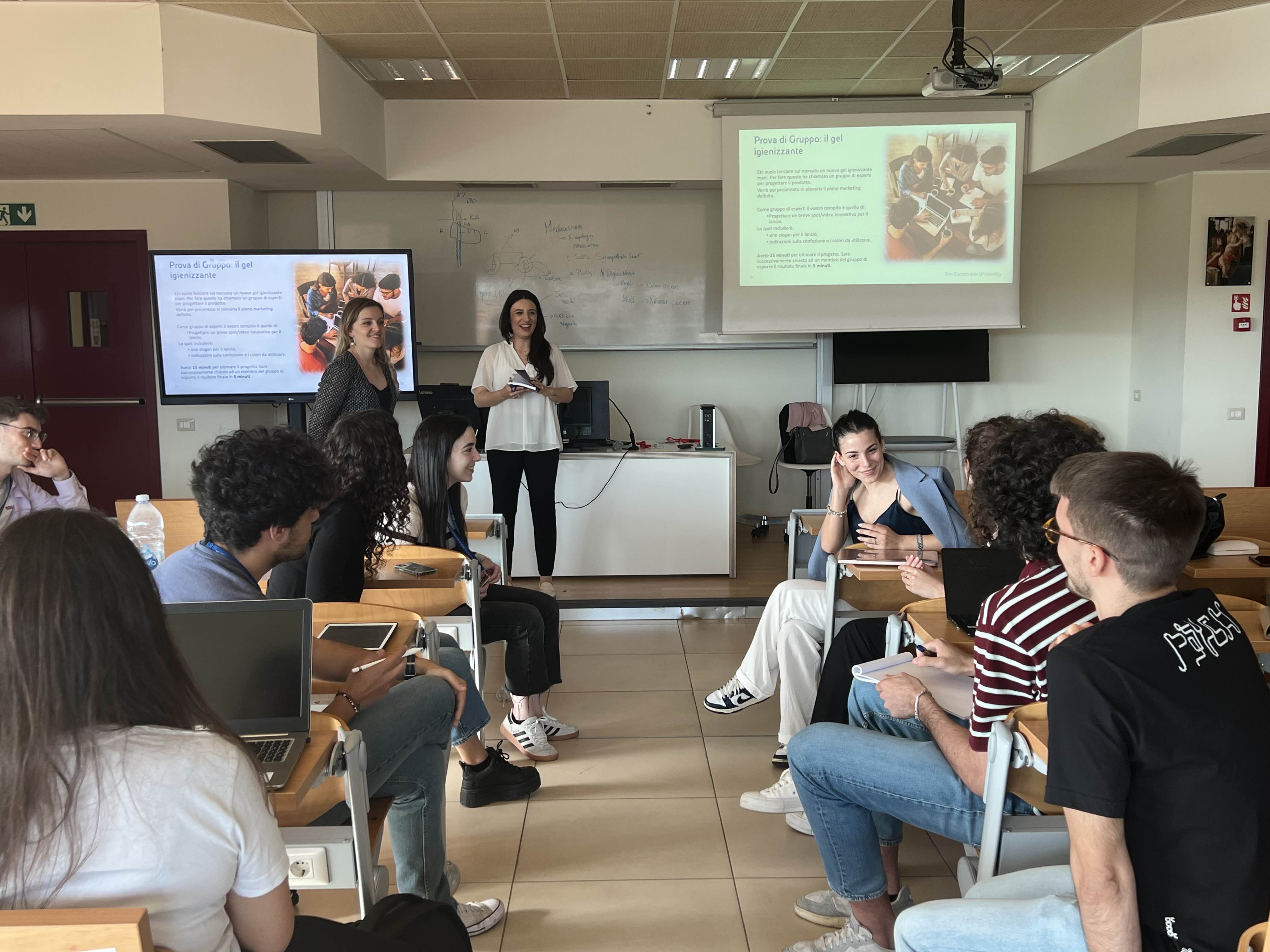 Gli studenti hanno avuto l’occasione di cimentarsi in una simulazione di un processo di recruitment tramite una prova di gruppo, esercitazione utile per individuare le competenze trasversali dei partecipanti e farli riflettere ulteriormente su loro stessi, allo scopo di agevolare la consapevolezza sui singoli tratti distintivi e allenarsi per valorizzarli al meglio.