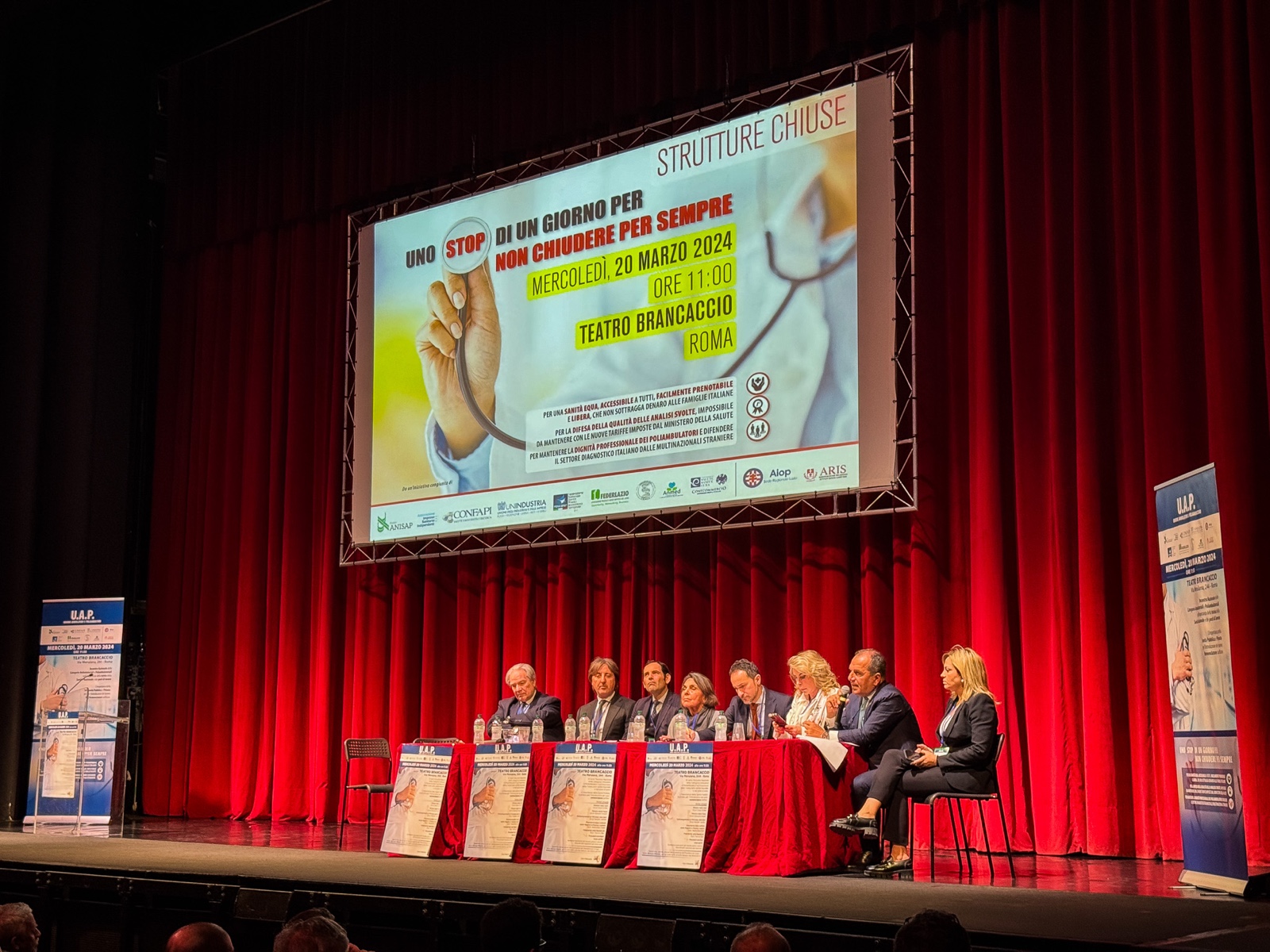 Presenti circa 800 persone al Brancaccio di Roma per l'incontro nazionale delle categorie ambulatoriali e poliambulatoriali riunite sotto la sigla Uap - Unione ambulatori e poliambulatori