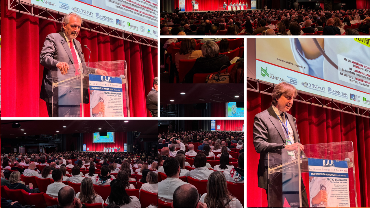 Oggi al Teatro Brancaccio di Roma si è tenuto l'incontro nazionale delle categorie ambulatoriali e poliambulatoriali, riunite sotto la sigla, Uap - Unione ambulatori e poliambulatori, riunitesi con grande partecipazione da tutto il territorio nazionale per portare all'attenzione delle istituzioni le criticità che porterebbe l'entrata in vigore del nuovo nomenclatore sanitario.