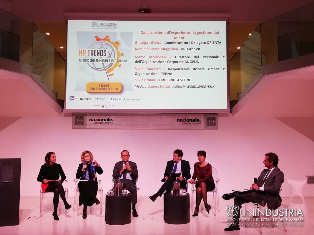 L'importanza del talento, dell’internazionalizzazione del lavoro e della formazione sono state oggetto della prima tavola rotonda tematica moderata da Alberto Belloni, Managing Partner AGILIUM WORLDWIDE ITALY, che ha visto gli interventi di: Giuseppe Biazzo, Amministratore Delegato Orienta, Manuela Vacca Maggiolini, HR Director AbbVie, Marco Morbidelli, Direttore del Personale e dell’Organizzazione Corporate Angelini, Silvia Marinari, Responsabile Risorse Umane e Organizzazione Terna e Silvia Brufani, HRD Bridgestone.