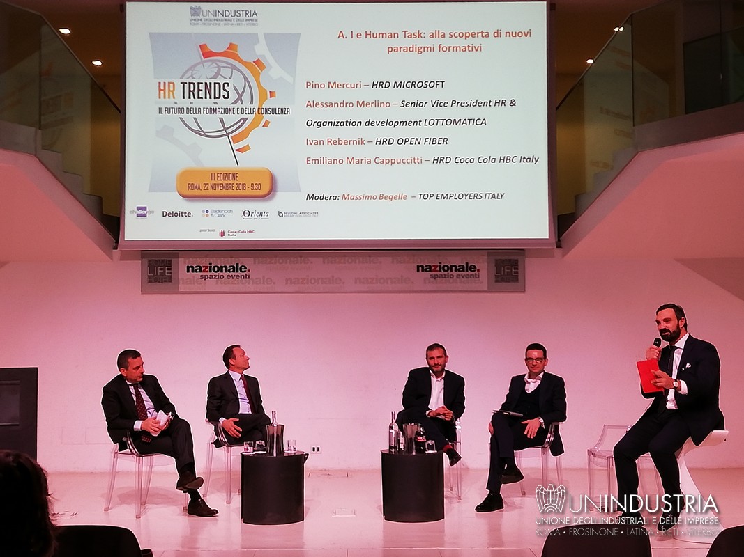 Ne hanno parlato: Pino Mercuri, HR Director Microsoft, Alessandro Merlino, Senior Vice President HR & Organizational Development Lottomatica, Ivan Rebernik, HR Director Open Fiber, Emiliano Maria Cappuccitti, HR Director Coca-Cola HBC Italia, moderati da Massimo Begelle, Country Manager Italy Top Employers.