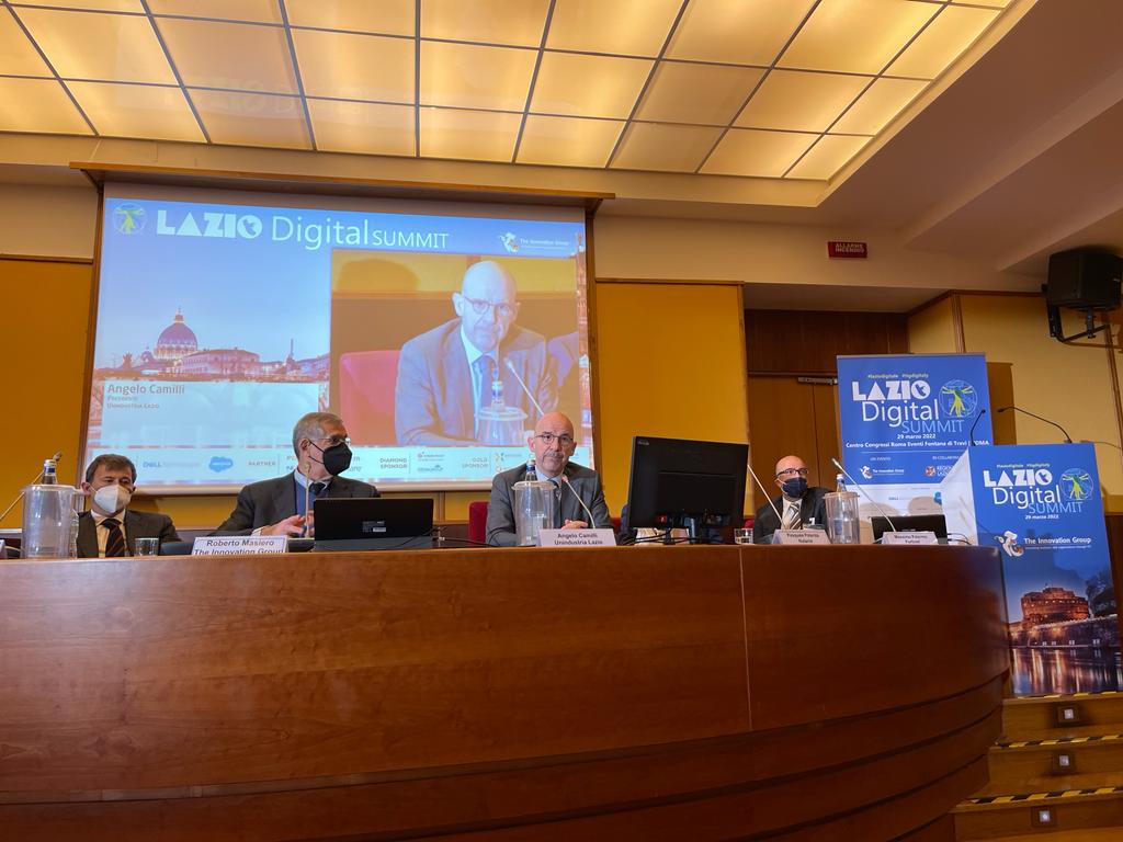 Questa mattina il nostro Presidente Angelo Camilli ha partecipato alla seconda edizione del Lazio Digital Summit svoltasi a Roma presso il Centro Congressi Roma Eventi Fontana di Trevi, prendendo parte alla Sessione dal titolo: “Transizione Ecologica, Innovazione Digitale e PNRR fattori chiave dello sviluppo dell’economia del Lazio” .