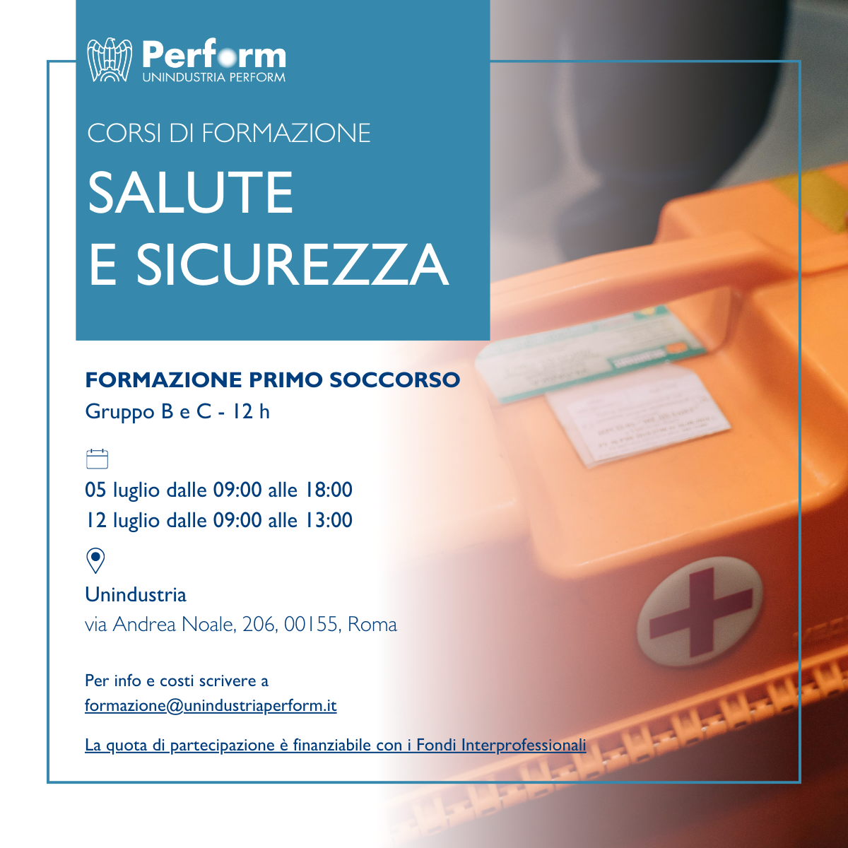 Gli addetti al primo soccorso saranno formati con istruzione teorica e pratica per l'attuazione delle misure di primo intervento interno e per l'attivazione degli interventi di primo soccorso. Il corso, della durata di 12 ore, prevede 2 incontri formativi.