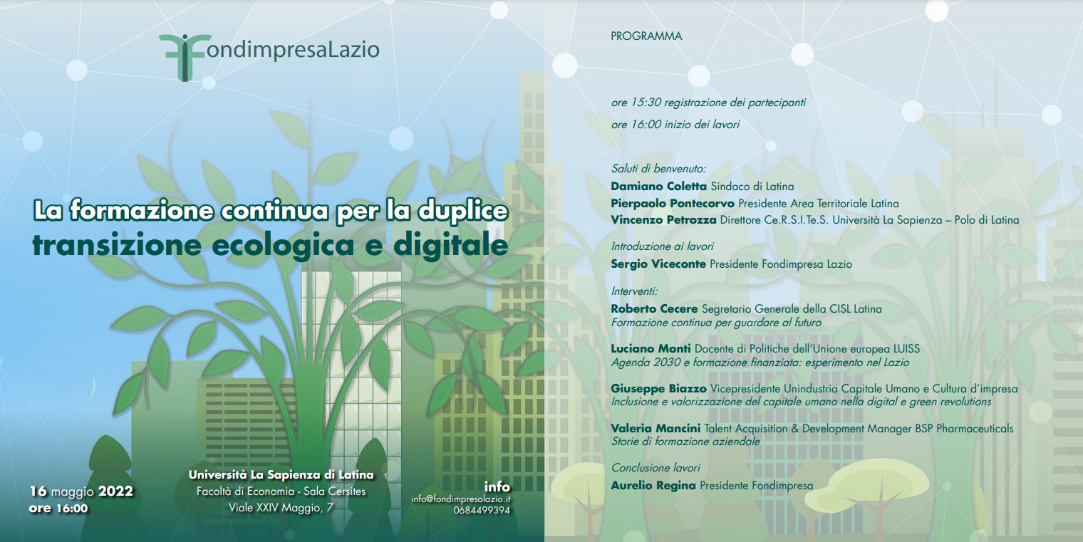 La formazione continua per la duplice transizione ecologica e digitale - Fondimpresa Lazio