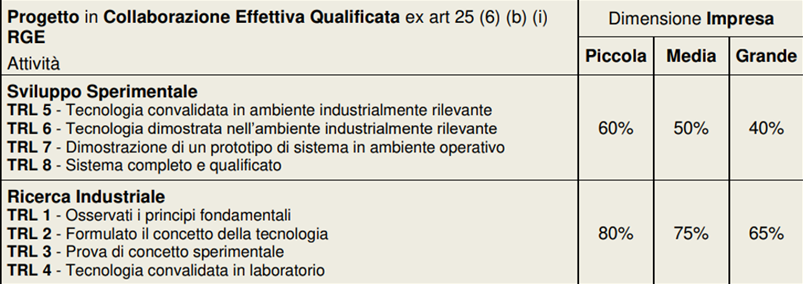 Qualora un Progetto sia realizzato in Collaborazione Effettiva, l’intensità di Aiuto è incrementata come rappresentato nella tabella che segue: