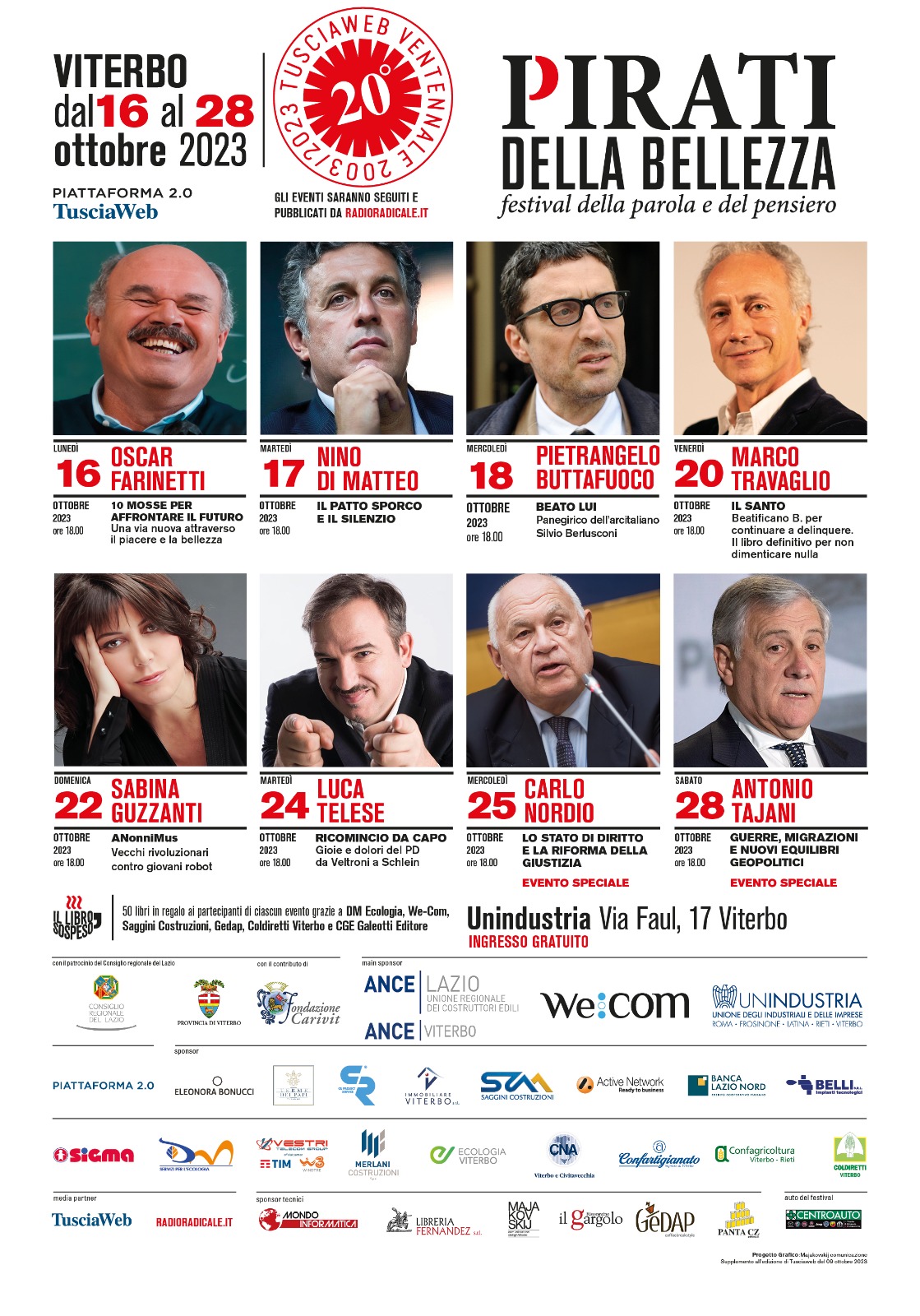 Dal 16 al 28 ottobre 2023 si terrà a Viterbo la manifestazione “I Pirati della bellezza” organizzata dal quotidiano on line Tusciaweb.