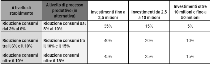 Agevolazioni: l’aliquota è variabile e si applica in base alla riduzione dei consumi e all’entità dell’investimento