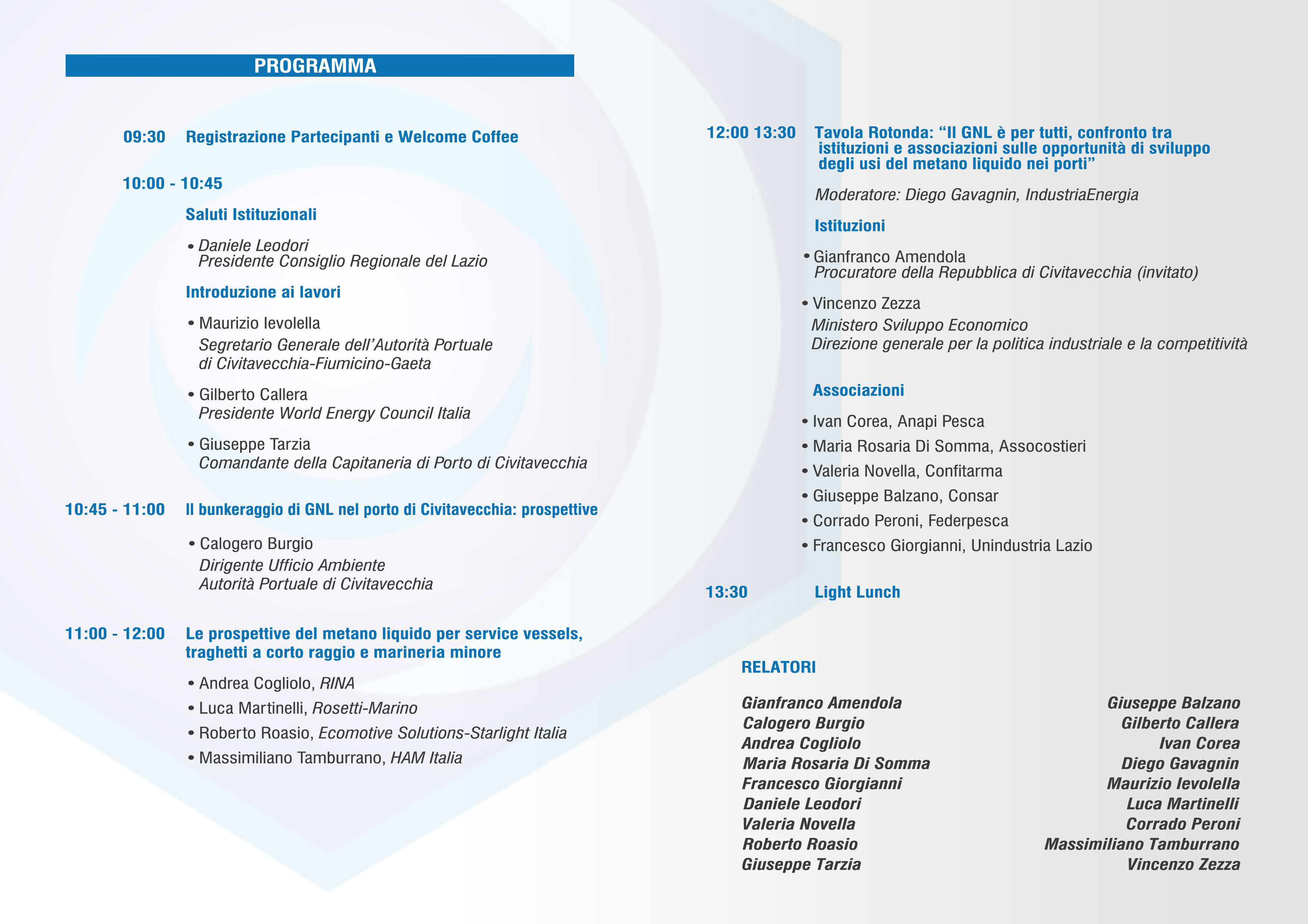 L’evento è organizzato, presso la sala Conferenze dell'Autorità Portuale di Civitavecchia - Molo Vespucci il prossimo 25 febbraio alle ore 9,30, dal WEC - World Energy Council - associazione che promuove le energie sostenibili e a cui aderiscono principali aziende del panorama italiano, anche non del settore energetico.