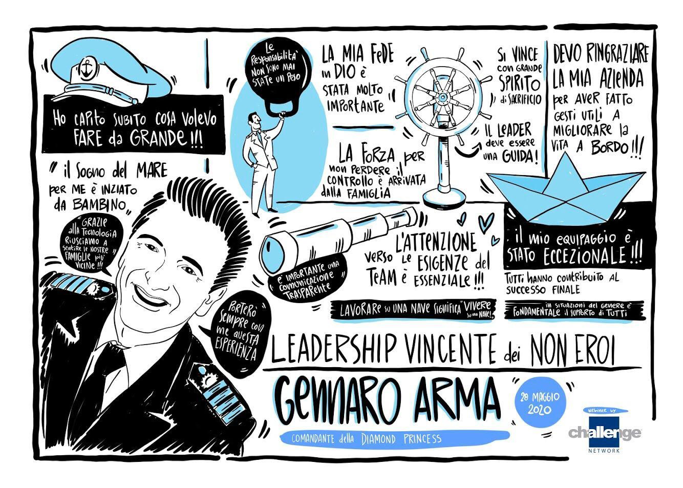 Lo scorso 28 maggio si è svolto il webinar solidale “La Leadership dei NON eroi”, promosso dalla Sezione Consulenza, Attività Professionali e Formazione di Unindustria, il cui ospite d’onore è stato Gennaro Arma, il comandante “non eroe” della Diamond Princess, che è stato nominato dal Presidente della Repubblica Sergio Mattarella Commendatore al Merito della Repubblica per “per il suo comportamento esemplare” nel gestire, in piena emergenza Covid, la quarantena della nave da crociera da lui capitanata.
