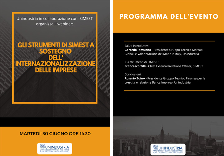 Martedì 30 giugno, dalle 14:30 alle 16:30, si terrà l’incontro aperto alle aziende, volto ad illustrare i nuovi strumenti a sostegno delle imprese offerti, con particolare focus sui Finanziamenti Agevolati destinati all’export e concessi a fondo perduto fino al 40% dell’importo del finanziamento, sulle seguenti attività: