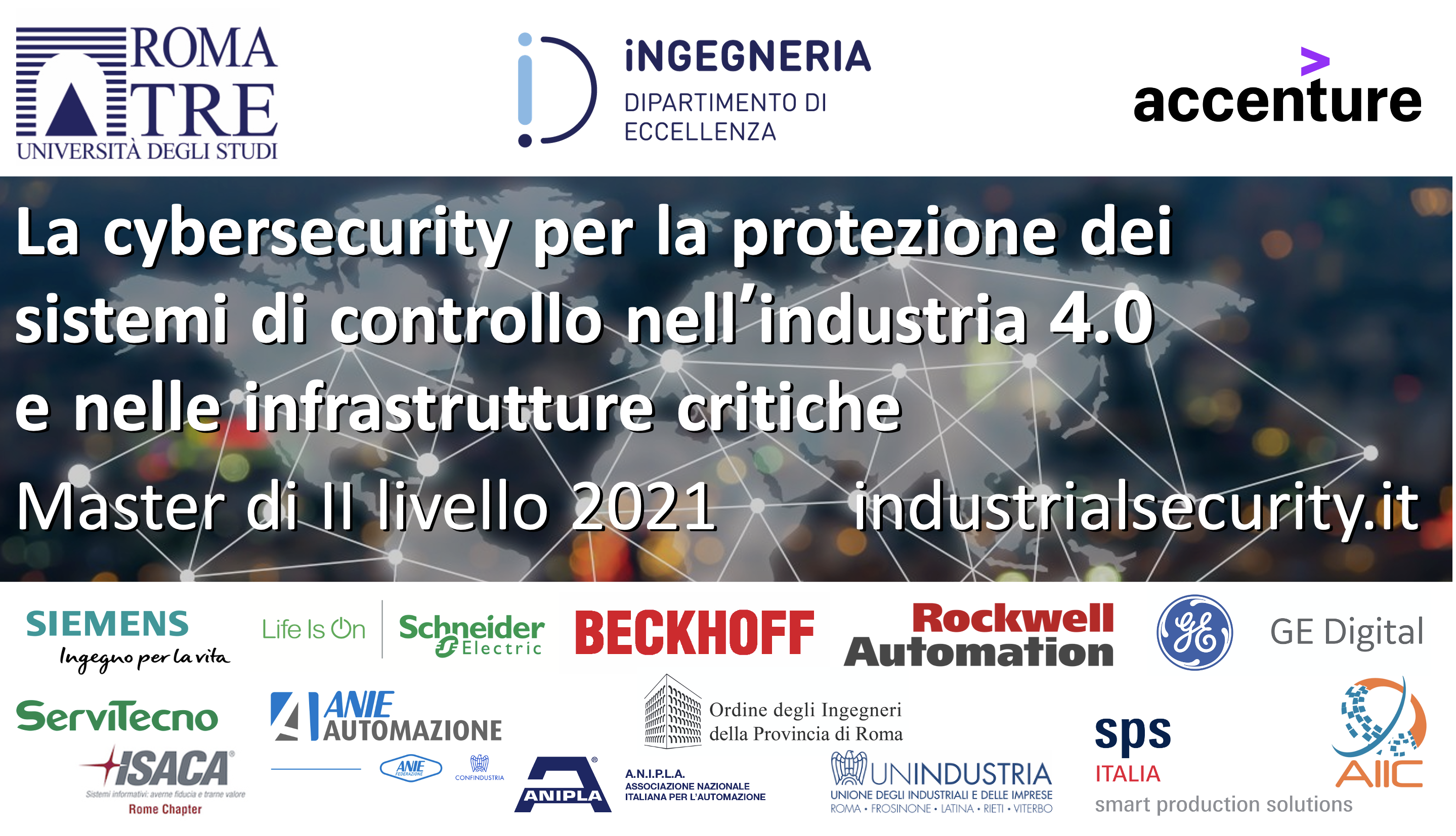 Sono aperte le iscrizioni al Master di II livello di Roma Tre "La cyber security per la protezione dei sistemi di controllo nell’industria 4.0 e nelle infrastrutture critiche", il primo Master di secondo livello cui Unindustria ha concesso il patrocinio, varato dal Dipartimento di Ingegneria dell’Università Roma Tre e diretto dal prof. Stefano Panzieri.