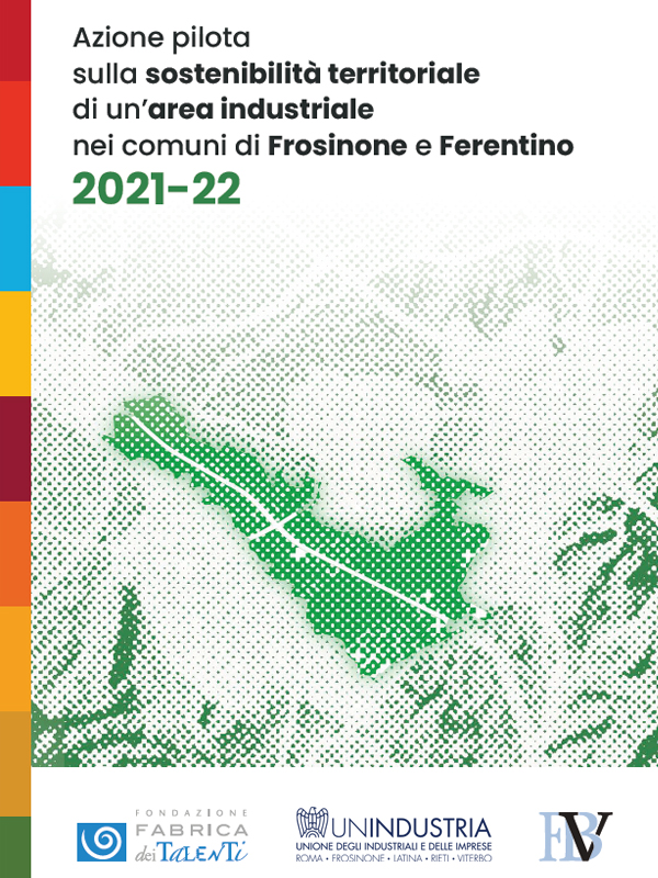 Grazie alla Fondazione Fabrica dei Talenti e in collaborazione con la Fondazione Bruno Visentini della Luiss, Unindustria ha provato a valorizzare il tessuto industriale acquisendo una fotografia delle strategie sulla sostenibilità Ambientale, sociale ed economica che le aziende portano avanti e al contempo acquisendo la percezione di studenti di alcuni istituti locali. Confrontando tale fotografia in alcuni focus group con enti come Arpa, Asl e Legambiente e portandola sui tavoli di amministrazioni locali Unindustria ha voluto trovare un punto di contatto con il territorio per avvicinare le imprese al territorio e renderle attori fondamentali nello sviluppo sostenibile del territorio.